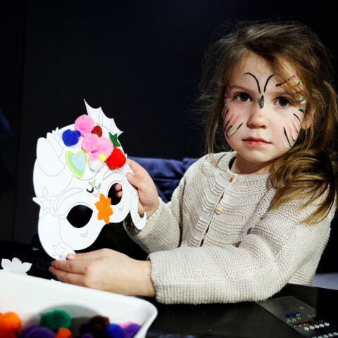 Entre deux spectacles, place à la créativité ! Feutres, plumes, paillettes et gommettes vous attendent pour réaliser le plus beau masque du festival.